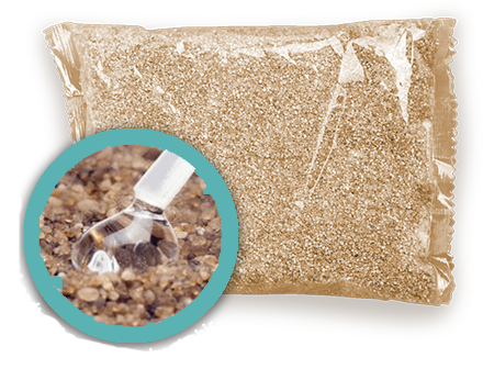 It’s made out of a high-quality natural quartz sand with a unique nontoxic hydrophobic coating.
